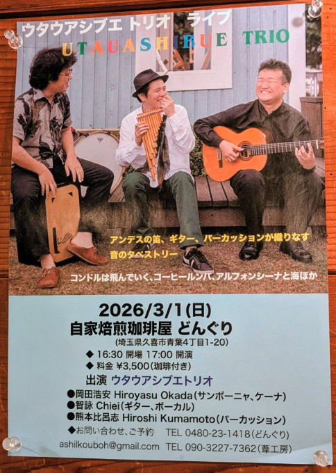 ★ウタウアシブエトリオ2026年も始動します!私にとってはとても久しぶりの久喜どんぐりでのライブ楽しみにしています。